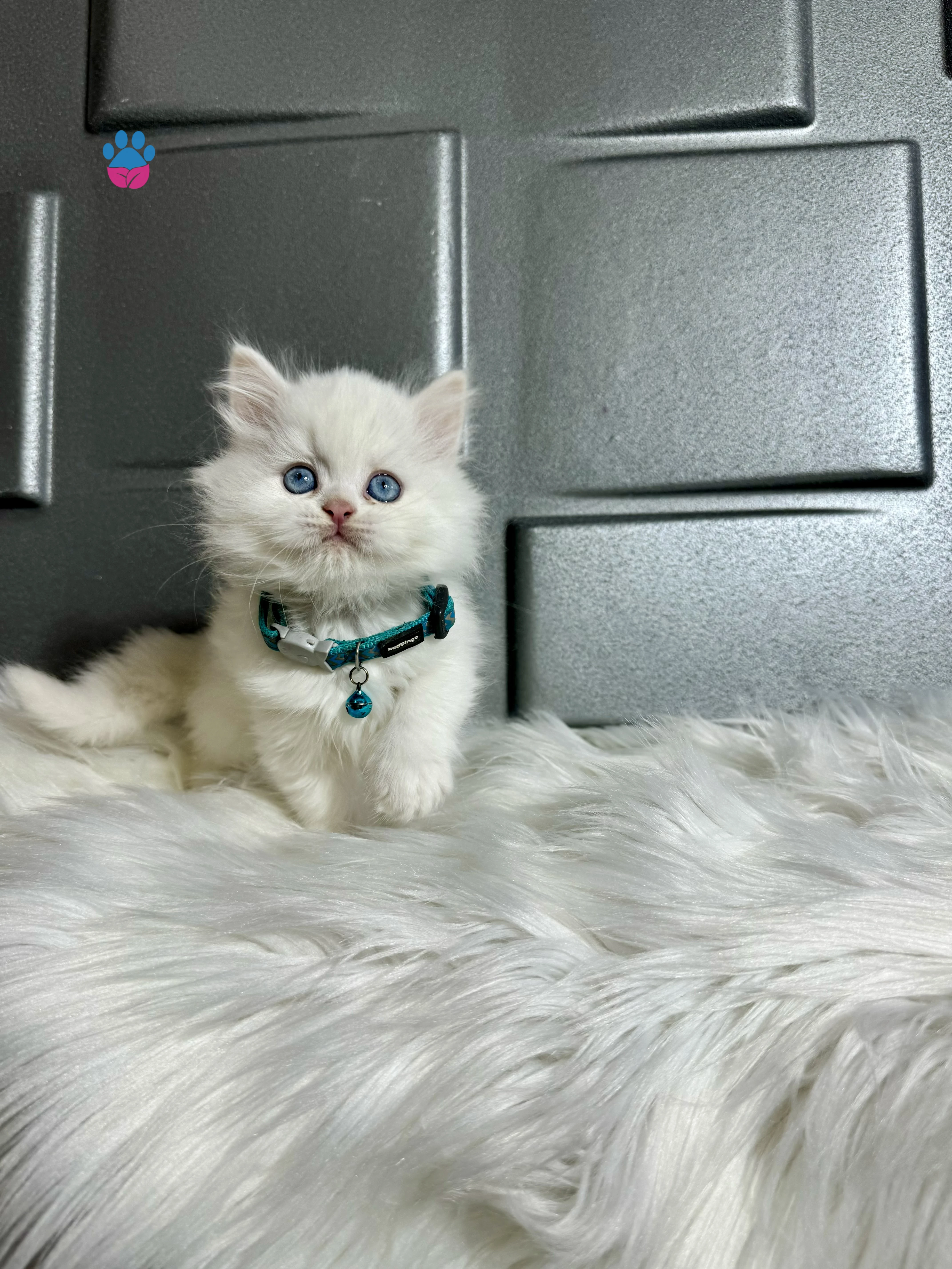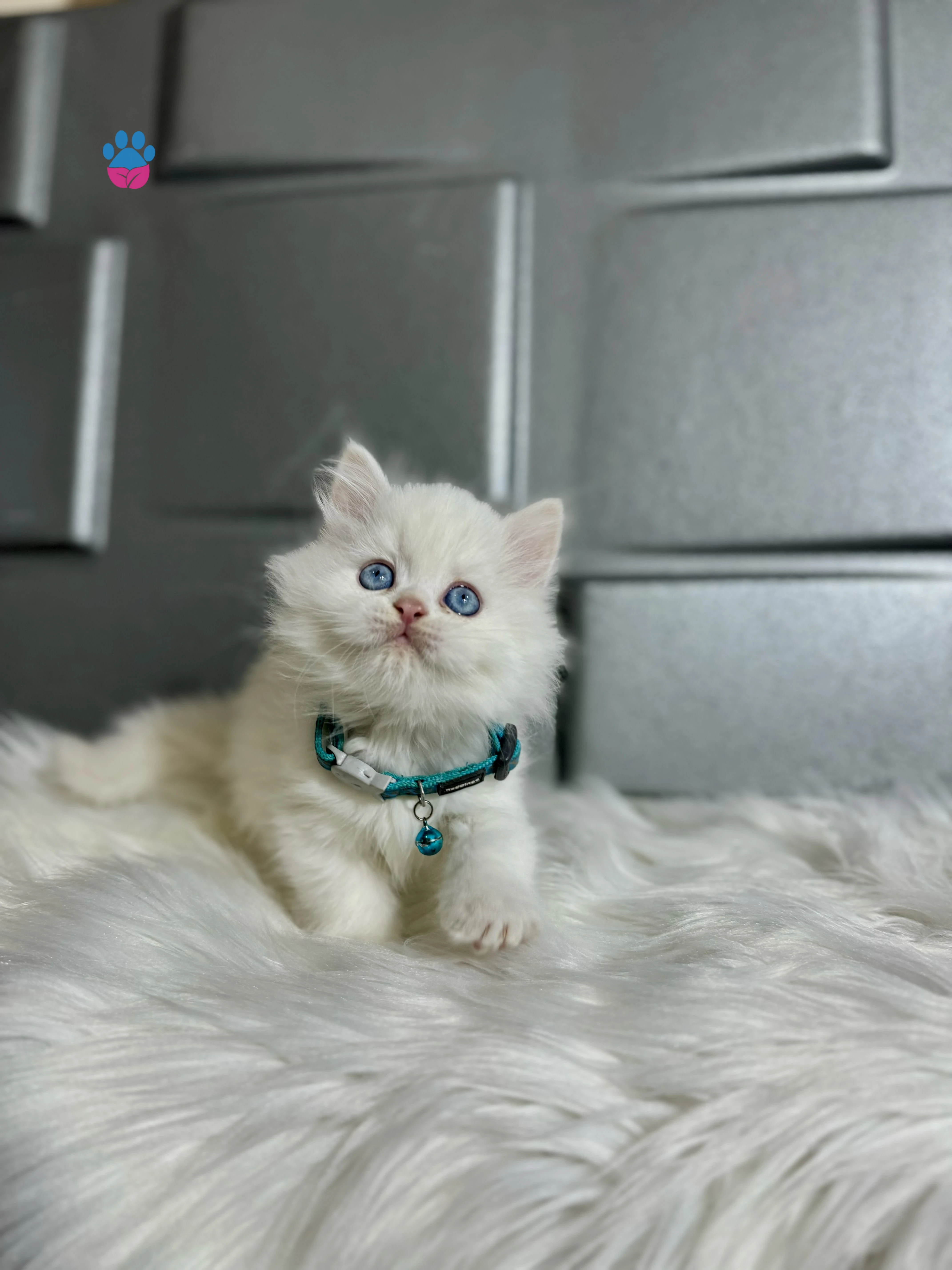 British Longhair Beyaz Erkek Mavi Gözlü 2 aylık kuru mama yiyor. Tuvalet eğitimi var. İç dış paraziti yapılı.