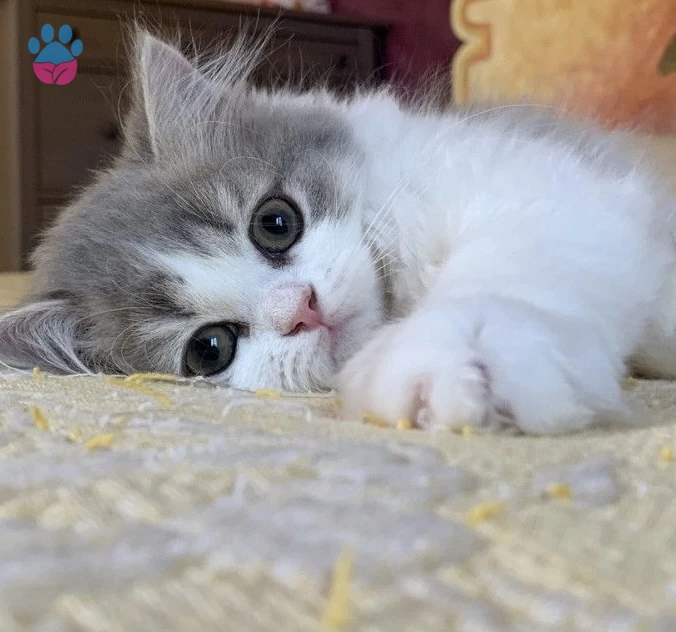 Nadir Bulunan British Longhair Bicolor Erkek 2 aylık kuru mama yiyor. Tuvalet eğitimi var. İç dış parazitleri yapıldı